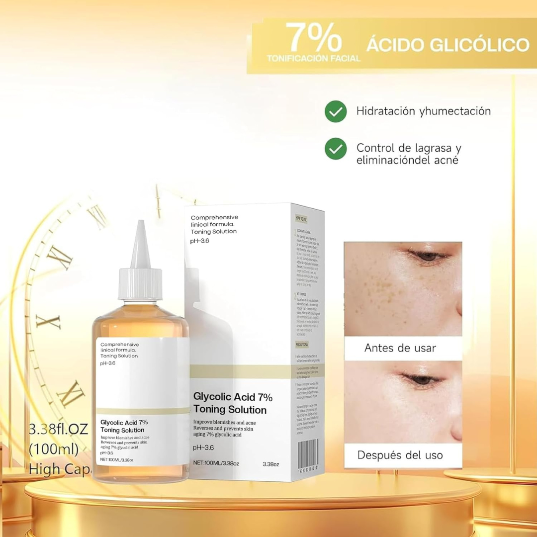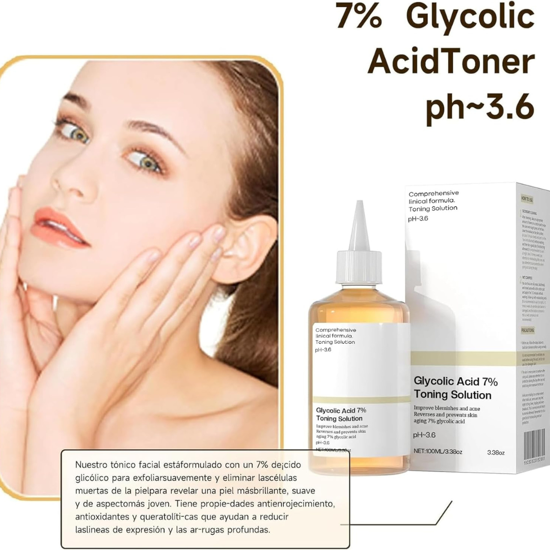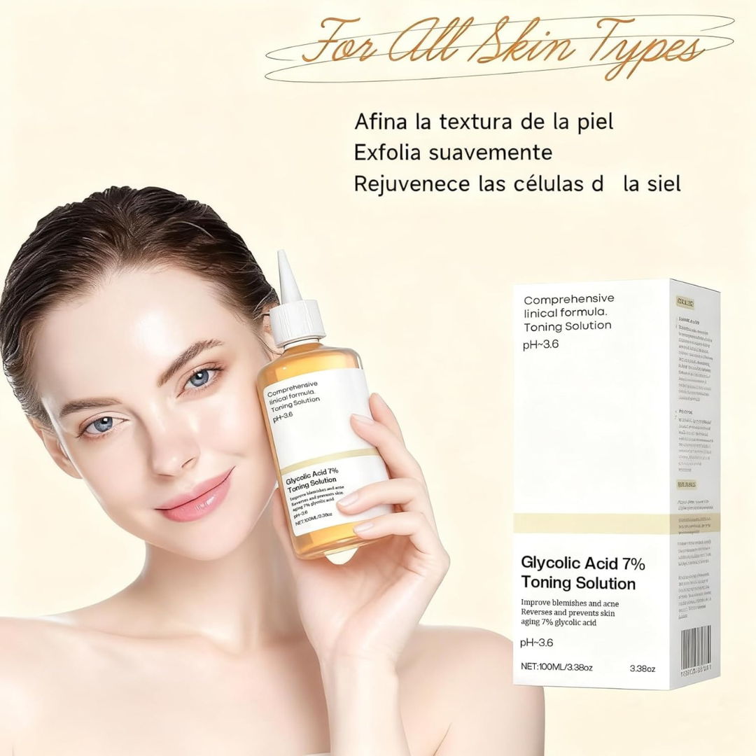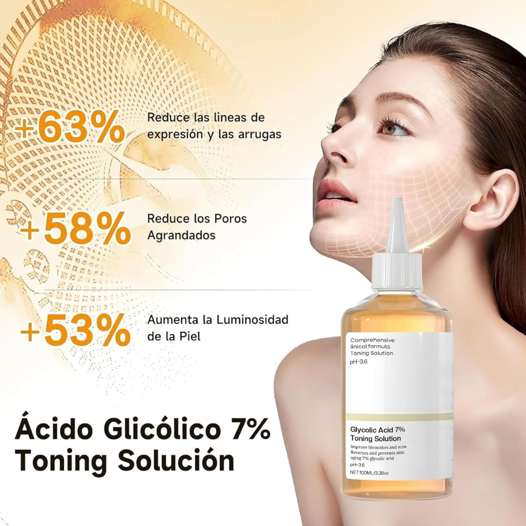El ácido glicólico estimula la producción natural de colágeno, mejorando la firmeza de la piel.Su acción renovadora suaviza poco a poco las líneas de expresión y los signos del envejecimiento.La piel recupera su elasticidad y luce más tersa y joven con cada aplicación.Ideal para prevenir arrugas prematuras y mantener un rostro fresco y descansado.Notarás cómo el cutis se ve más uniforme, luminoso y con un aspecto rejuvenecido.